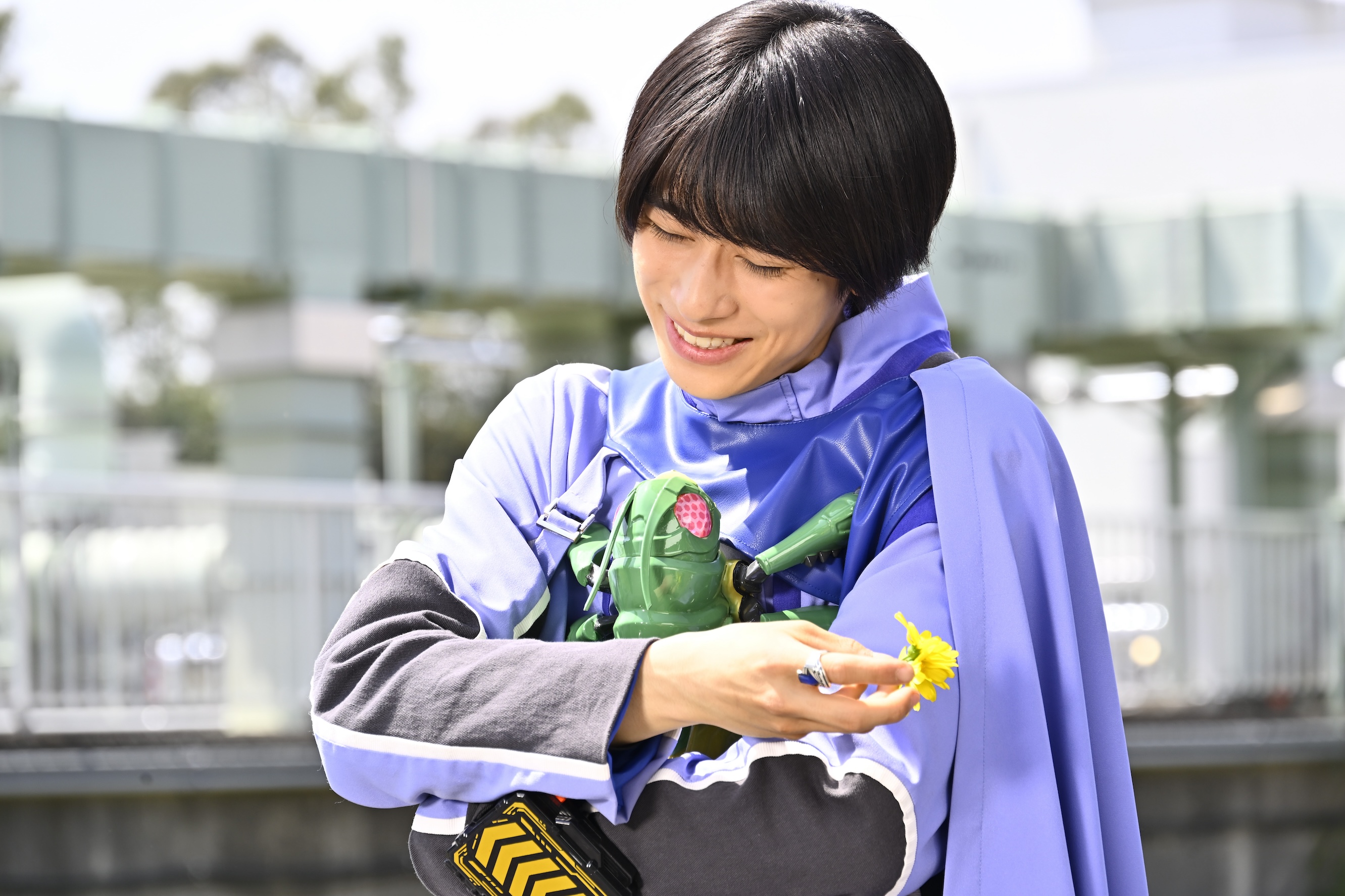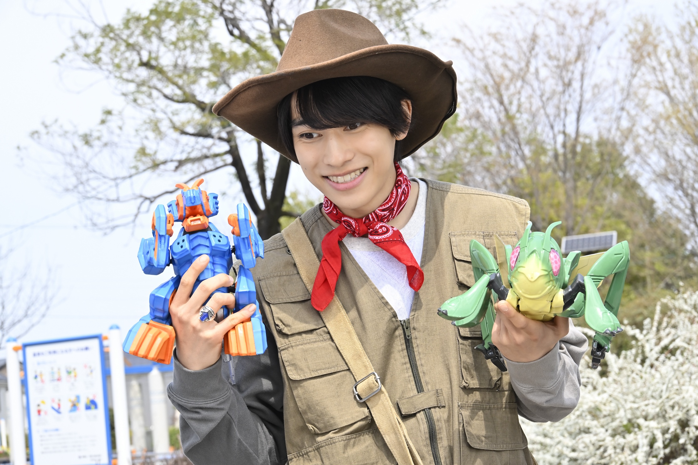 ホッパー1とニジゴンを手にご機嫌の宝太郎君。ですが、その衣装にはどんな意味が?